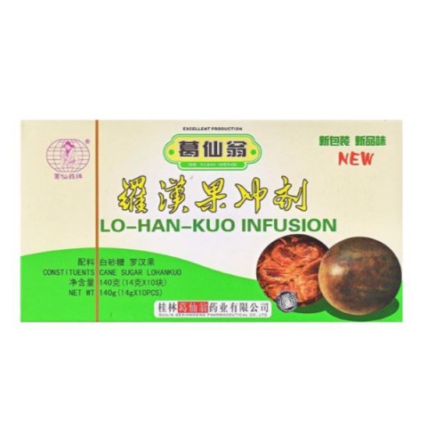 Lo Han Kuo Fruit Tea from GeXianWeng is a traditional Chinese herbal infusion made with the naturally sweet Lo Han Kuo fruit, also known as monk fruit. This fruit tea is popular for its soothing effect and is often used to relieve throat irritation and support the airways. It is perfect as a mild and natural drink for everyday use and can be enjoyed both hot and cold. For preparation, simply dissolve a cube in boiling water – simple and convenient. Lo Han Kuo Fruit Tea is an ideal choice for those who want a sweet, caffeine-free drink rooted in traditional Chinese wellness.