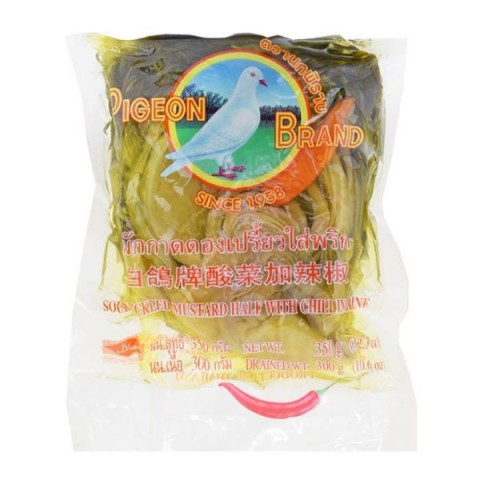Add a spicy and tangy twist to your meals with Pickled Mustard Greens with Chili in Brine from Pigeon.