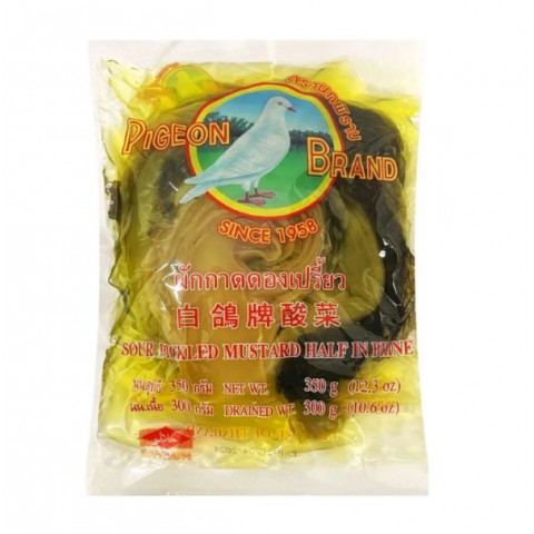 Experience authentic Thai flavor with Pickled Mustard Greens in Brine from Pigeon.