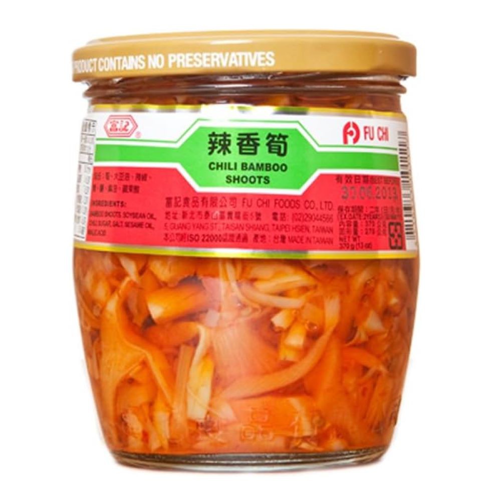 Ingredients: Bamboo shoots, soybean oil, chili, sugar, salt, acidity regulator: malic acid (E296). Contains soybeans.