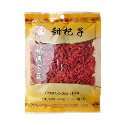 Goji Berries Large 100g Golden Lily is a pack of dried goji berries, also called wolfberries.