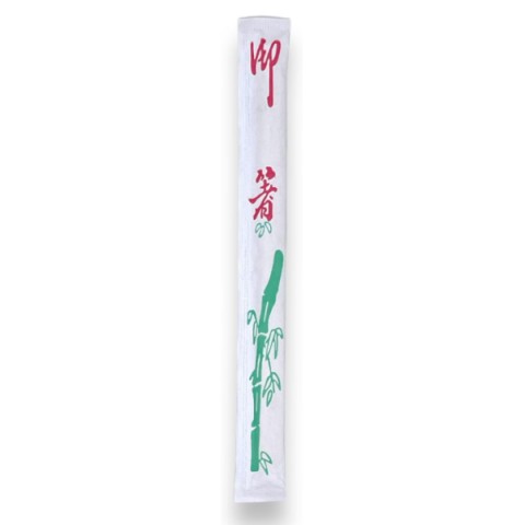 1 pair of high-quality disposable chopsticks made of bamboo and packaged in a sealed envelope with a green bamboo design.
