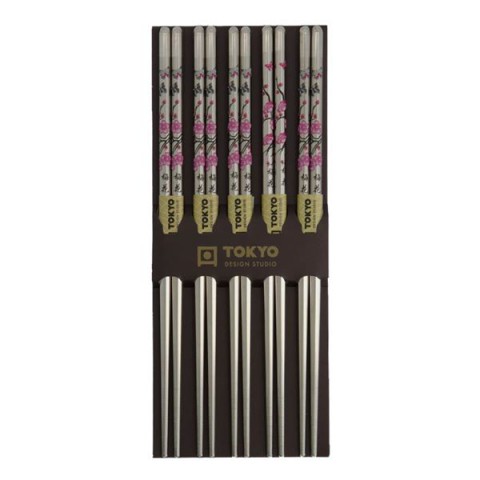 Timeless and elegant chopsticks in stainless steel with a beautiful sakura flower motif. Contains 5 pairs of 22.5 cm.