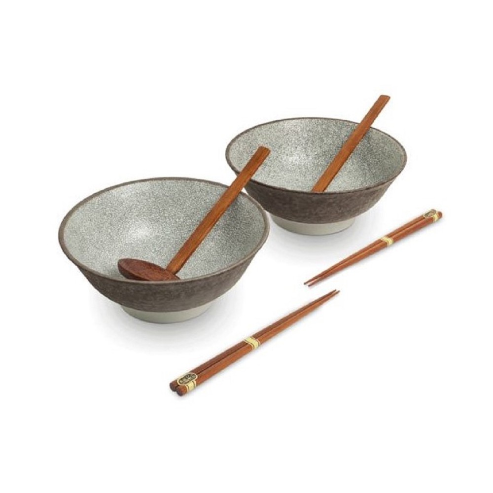 Ramen set for 2 people consisting of 2 attractive bowls, 2 ramen soup spoons and 2 pairs of wooden chopsticks. GTIN: 08715226508279