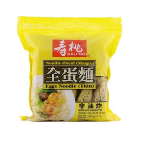 Sautao Thin egg noodles are fine, classic egg noodles with a soft and elastic texture. Perfect for stir-fries, soups, or as a side in both hot and cold Asian dishes. The noodles are easy to prepare and add a rich, authentic flavor to your meals.