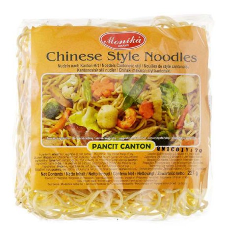 Monika Canton Noodles 227g are classic Chinese wheat noodles, known for their firm texture and versatility in Asian dishes. These noodles are particularly popular in dishes such as Chow Mein and Lo Mein, where they are stir-fried with meat, seafood and vegetables in a flavorful sauce. They are also suitable for Pancit Canton, a Filipino wok dish, as well as for Pad Thai, where they are combined with shrimp, eggs and peanuts.