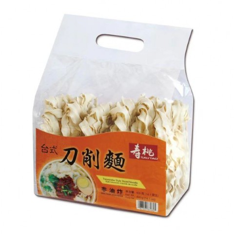 Taiwanese Sliced Noodles 400g from Sautao are traditional knife-cut noodles, known for their bouncy and chewy texture. They are particularly well suited for Taiwanese and Chinese noodle soups, where they absorb the broth's flavor without losing bite, as well as for stir-fry dishes, where their hearty texture pairs perfectly with crisp vegetables and spicy sauces. Use them in classics like Taiwanese beef noodle soup, dan dan noodles or a simple wok dish with soy, garlic and greens – where they add both depth and satiety.