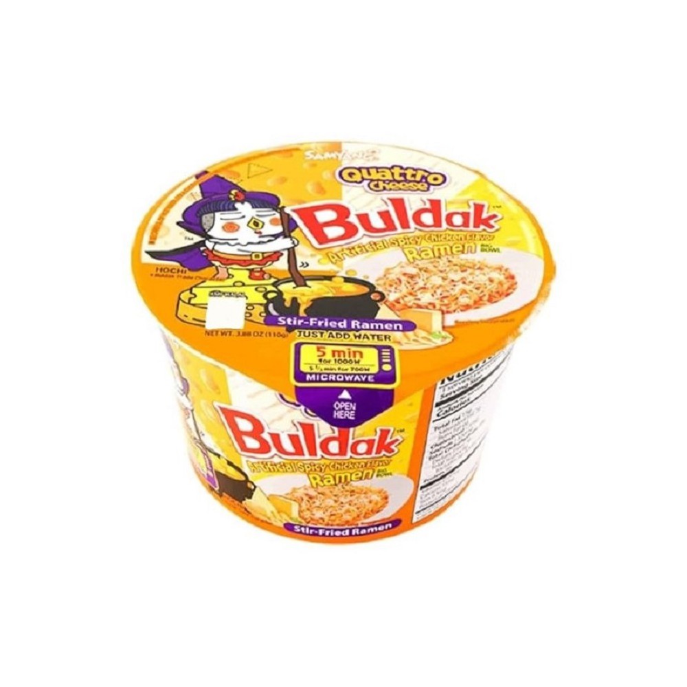 Spicy, irresistibly creamy! This Korean cup-ramen combines the iconic Buldak Hot Chicken-sauce with a rich blend of four cheeses – cheddar, gouda, camembert and mozzarella. The result is an explosive mix of heat and full-bodied cheese flavor that hits the taste buds. Perfect as quick and satisfying comfort food with a kick.