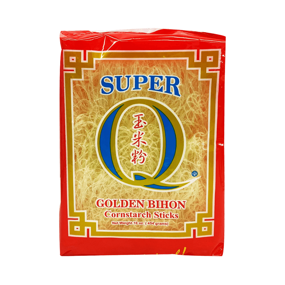Cornstarch noodles (Golden Bihon) are thin, transparent noodles made from cornstarch, which gives them a light and pleasant texture. These noodles are perfect for traditional Filipino dishes like Pancit Bihon, but also work well in soups, stir-fries, and salads. Their mild flavor makes them versatile, so they easily absorb flavors from the ingredients they are cooked with. Golden Bihon have a delicate texture that becomes soft without losing shape, making them popular in both everyday meals and festive dishes.