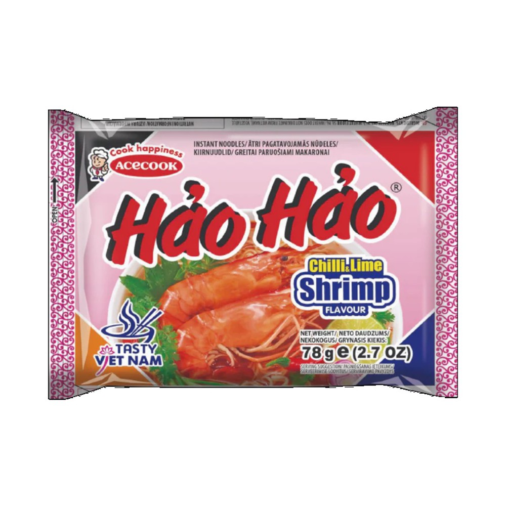 Ingredienser: Nudler: 87,2%: HVEDEmel 58,3%, vegetabilsk olie (palmeolie, antioxidanter: E320, E321), stivelse, salt, sukker, FISH sauce (STOLEPHORUS-arter), smagsforstærker: E621, Surhedsregulerende midler: E501, E500, Fugtighedsbevarende middel: E451. Suppepulver 9,6%: sukker, salt, smagsforstærker: E621, E631, E627, Krydderier, surhedsregulerende middel: E330, REJEpulver 0,3% (ACETES), chilipulver 0,3%, tørret forårsløg, limeblade pulver 0,01%. Olie 3,2%: vwgwtabilsk olie (palmeolie, antioxidanter: E320, E321), krydderier, steget chili 0,1%, FISH sauce (STOLEPHORUS-arter), kunstig hvidløgsaroma, farvestof:E160a.