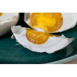 Traditionally, salted duck eggs are served with congee (rice porridge) for breakfast. But the true delicacy for many is the yolk. The yolk has a flavor that resembles a soft mashed roasted chestnut, with a salty and rich umami taste.