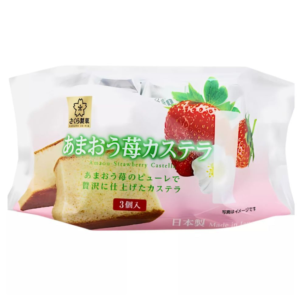 Experience a sweet, fruity flavor experience with Amaou Strawberry Castella Cake from Sakura Seika.