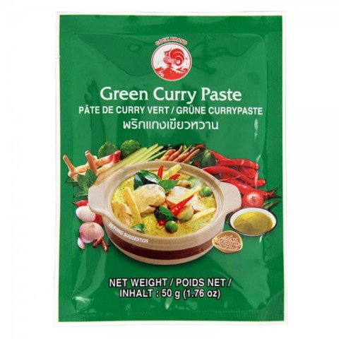 Buy Green Curry Paste 50g from Cock Brand – a small pack with big flavor. Intense Thai curry paste with fresh green chili, herbs and spices.
