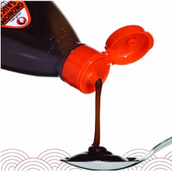 Ingredients: Water, sugar, molasses, tomato paste, soy sauce (water, soybeans, salt), apple paste, salt, fermented vinegar (alcohol, rice, sake grain (rice, rice-koji), water), thickening agent E1414, onion paste, vegetables (contains CELERY), yeast extract (yeast extract (garlic, acerolas, corn, pineapple), dextrin, salt), date juice, carrot extract, thickening agent E415, garlic extract, shiitake powder.