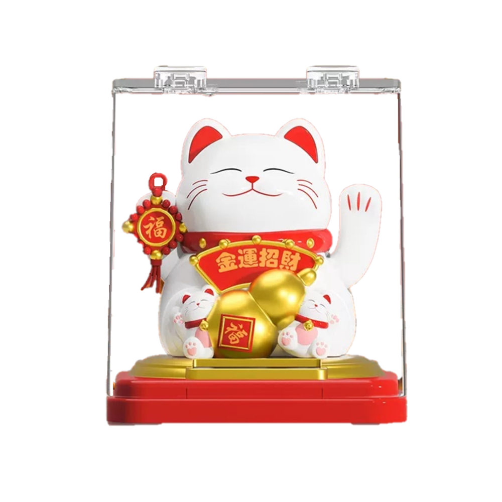 Den vinkende arm symboliserer at tiltrække held, penge og positive energier. Perfekt til skrivebord, hylde, butiksvindue eller som en dekorativ gave, der kombinerer traditionel charme med moderne teknologi.