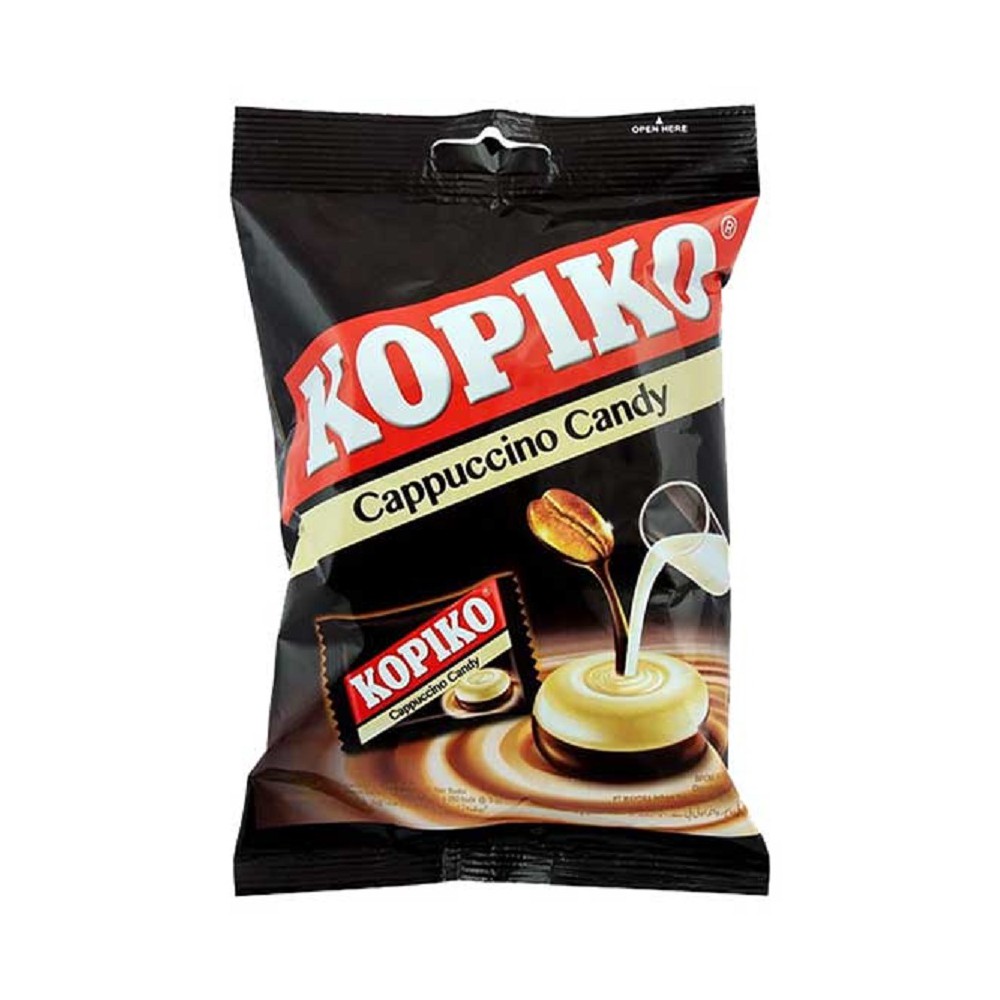 Kopiko Cappuccino kommer i en pose med 175 g individuelt indpakkede bolsjer, lavet med ægte kaffeekstrakt og blandet med cremet mælk. Smagen er rundere og mildere end de originale Kopiko, så du får en blød cappuccinooplevelse i bolsjeform.