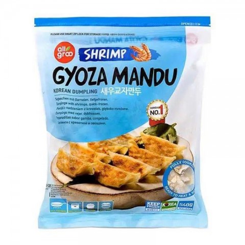 Gyoza Mandu med Rejer 540g – Allgroo 是含有虾和蔬菜的精致馅料、包裹在薄面皮中的韩国饺子。它们可以用多种方式烹调——在平底锅中煎脆、蒸或煮——非常适合作为前菜、轻食或韩式晚餐。在家享受亚洲的正宗风味。