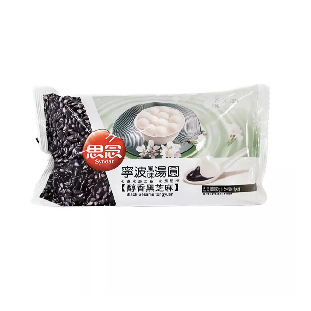這款寧波湯圓外皮細緻柔軟,內餡為香濃黑芝麻,經烘焙後散發出濃郁堅果香氣與自然甜味,煮熟後口感細滑溫潤。