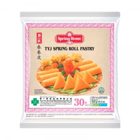 Spring Home 春卷皮以其薄且有弹性的结构著称,便于卷制与烹饪。面皮在包裹馅料时不易破裂,保证烹制后表面完美酥脆。