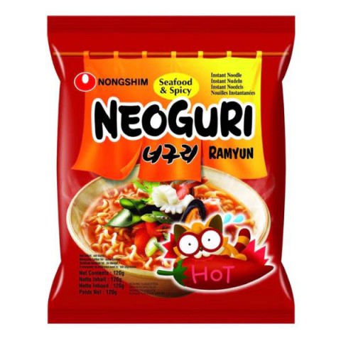 Neoguri 是 Nongshim 的专属品牌,以清澈、浓郁的汤底和带有韩国海带碎片的劲道面条为特色。这种面条类似“乌冬”的拉面。 Bl.a. 以电影《寄生虫》中出现的 Chapaguri(Chapaghetti 与 Neoguri 拉面的混合)而闻名。
