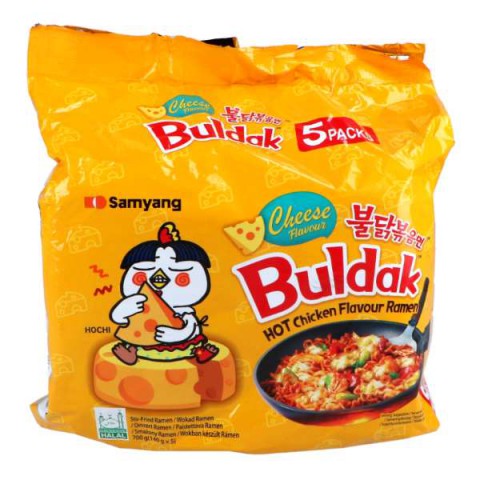 此包装包含五份受欢迎的韩国拉面,结合了Samyang 的 Buldak 酱的浓烈辛辣风味与浓郁美味的奶酪风味。